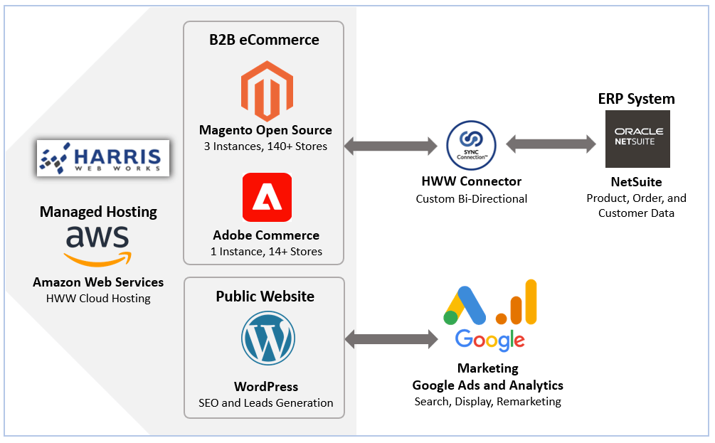 While Magento’s application programming interface (API) is exceptionally flexible and versatile to integrate with a wide variety of ERP platforms, the integration can be quite challenging. There are dozens of variables and factors to consider. The Magento-certified Harris Digital team handles complex Magento/NetSuite ERP integrations, which includes sorting through many layers of data, charting the best path, and configuring the integration via our SYNC ConnectionTM tool or by working with third-party integrators.